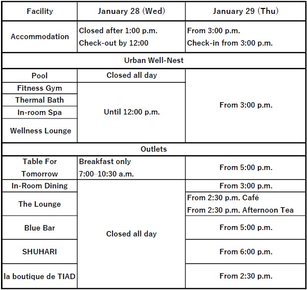 From 1:00 PM on January 28th to 12:00 PM on January 29th, no one is allowed to enter the hotel, including the lobby.