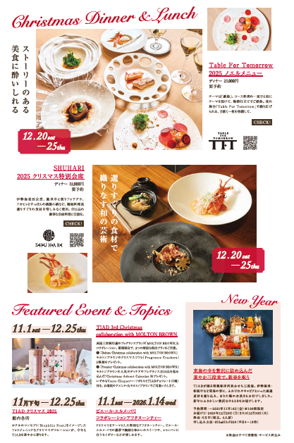 華やかで楽しいムードに包まれるホリデーシーズンならではのスペシャルコースとディスプレイで皆様をお迎えします。