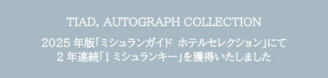 「TIAD, オートグラフ コレクション」(所在地:名古屋市中区栄5-15-19、総支配人:中田匡彦、以下 TIAD)は、2025年10月8日(火)に発表された、世界同時発表されたミシュランガイドのホテルセレクション「ミシュランキー」において、「1 ミシュランキー」を獲得いたしました。昨年、日本ではじめて発表されたホテルセレクションに引き続き、2年連続での評価となります。