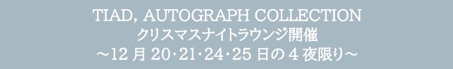「TIAD, オートグラフ コレクション」(所在地:名古屋市中区栄5-15-19、総支配人:中田匡彦、以下 TIAD)は、この冬、3回目のクリスマスシーズンを迎えます。