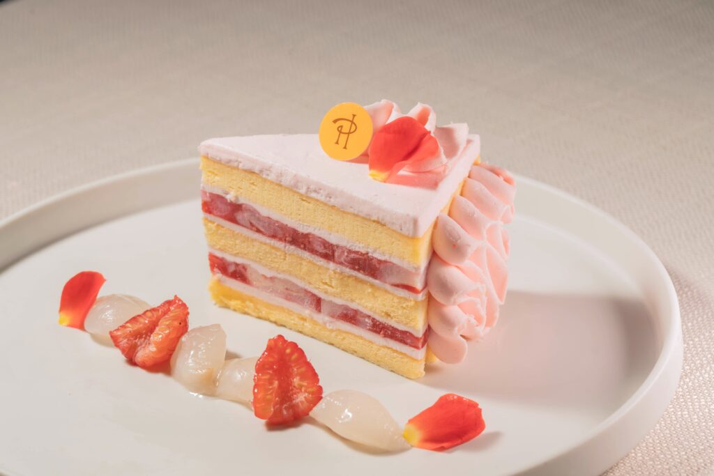 ピエール・エルメ・パリの象徴的なフレーバー、イスパハンを、ショートケーキにアレンジ。柔和なテクスチャーのビスキュイに挟まれたバラとライチが優しいハーモニーを奏でます。春を想起させる華やかなフレーバーに、甘酸っぱいフランボワーズが上品なアクセントを添えるケーキです。