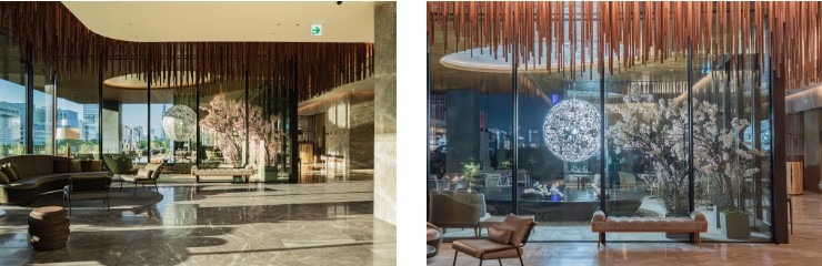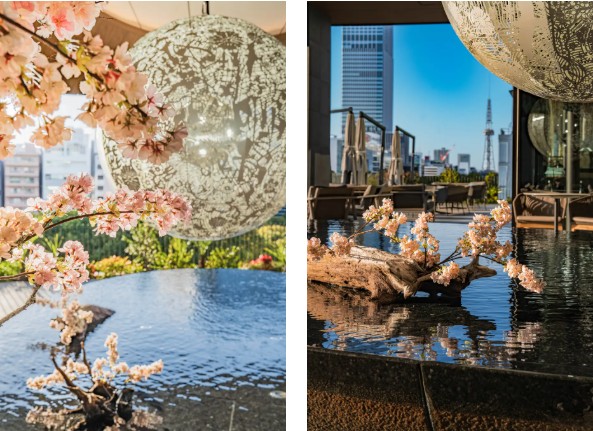 ことしもTIAD5階の水盤テラスに桜の装飾がお目見えいたしました。テラスはパブリックスペースですので、どなた様も桜をご覧いただけます。また、隣接するオールデイダイニングのテラス席やバーカウンターからも桜を愛でることができ、ロゼワインフェア、ピエール・エルメ・パリ「ショートケーキ イスパハン」ご提供期間とも重なりますので、お花見気分でお食事やドリンクをお愉しみいただけます。