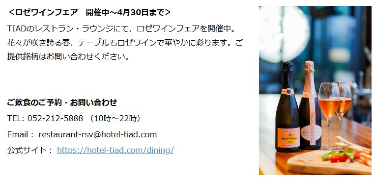 「TIAD, オートグラフ コレクション」(所在地:名古屋市中区栄5-15-19、総支配人:中田匡彦、以下 TIAD)は、2023年7月の開業以来、3回目の春を迎えます。
